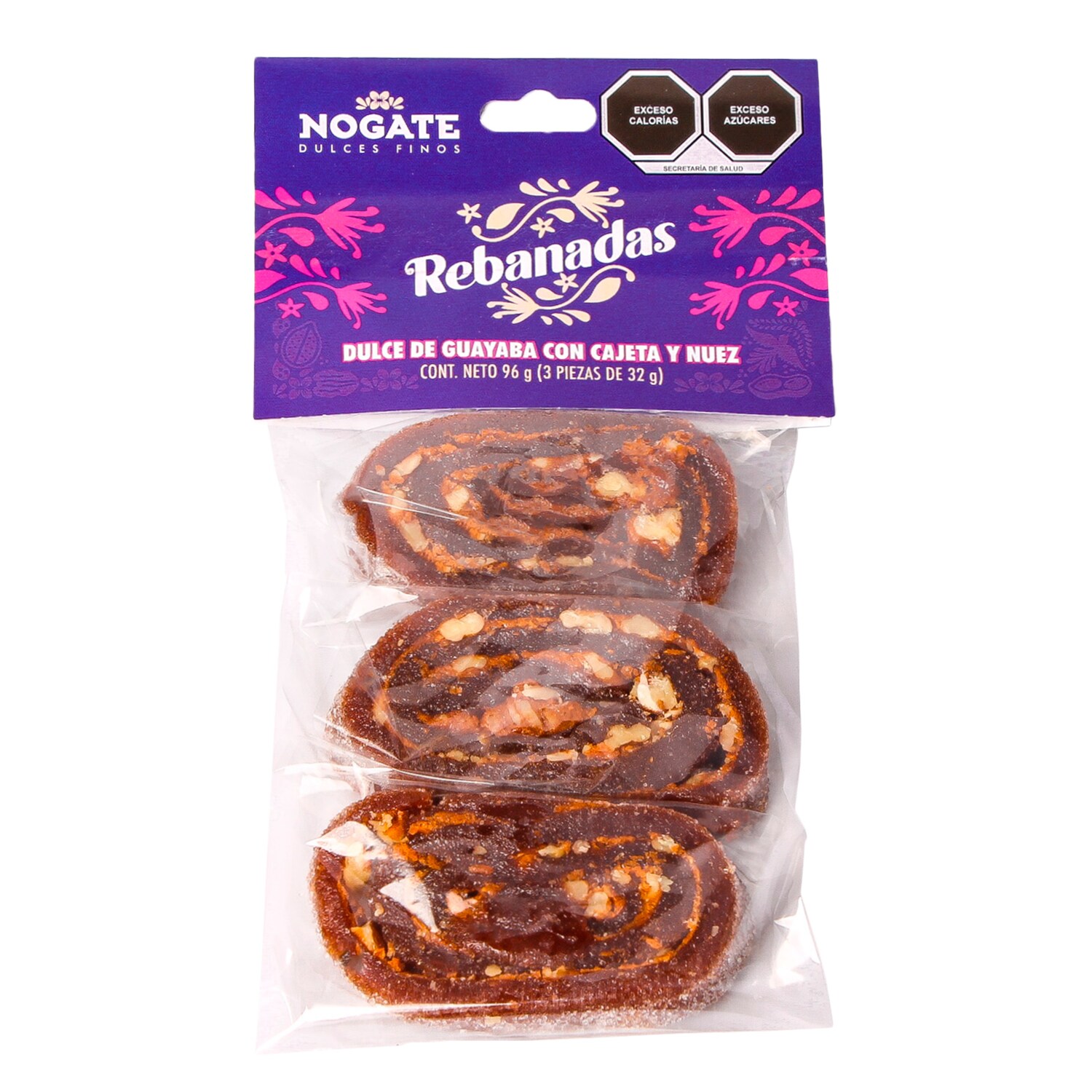 Disfruta de nuestras deliciosas rebanadas de ate de guayaba rellenas con cremosa cajeta artesanal y nuez de la mejor calidad. Elaboradas con pulpa de guayaba natural.
