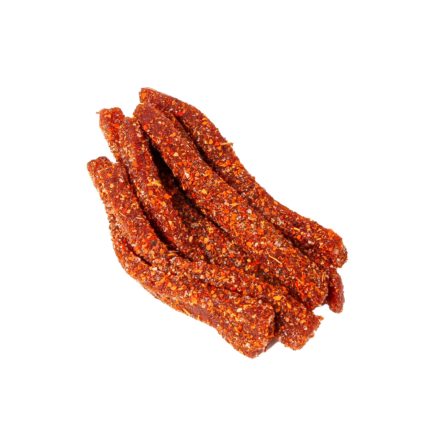 Tiras de Guayaba Enchiladas elaboradas con guayaba natural y recubiertas con una capa de chile en polvo estas tiras son el snack perfecto para quienes disfrutan de sabores intensos y auténticos.